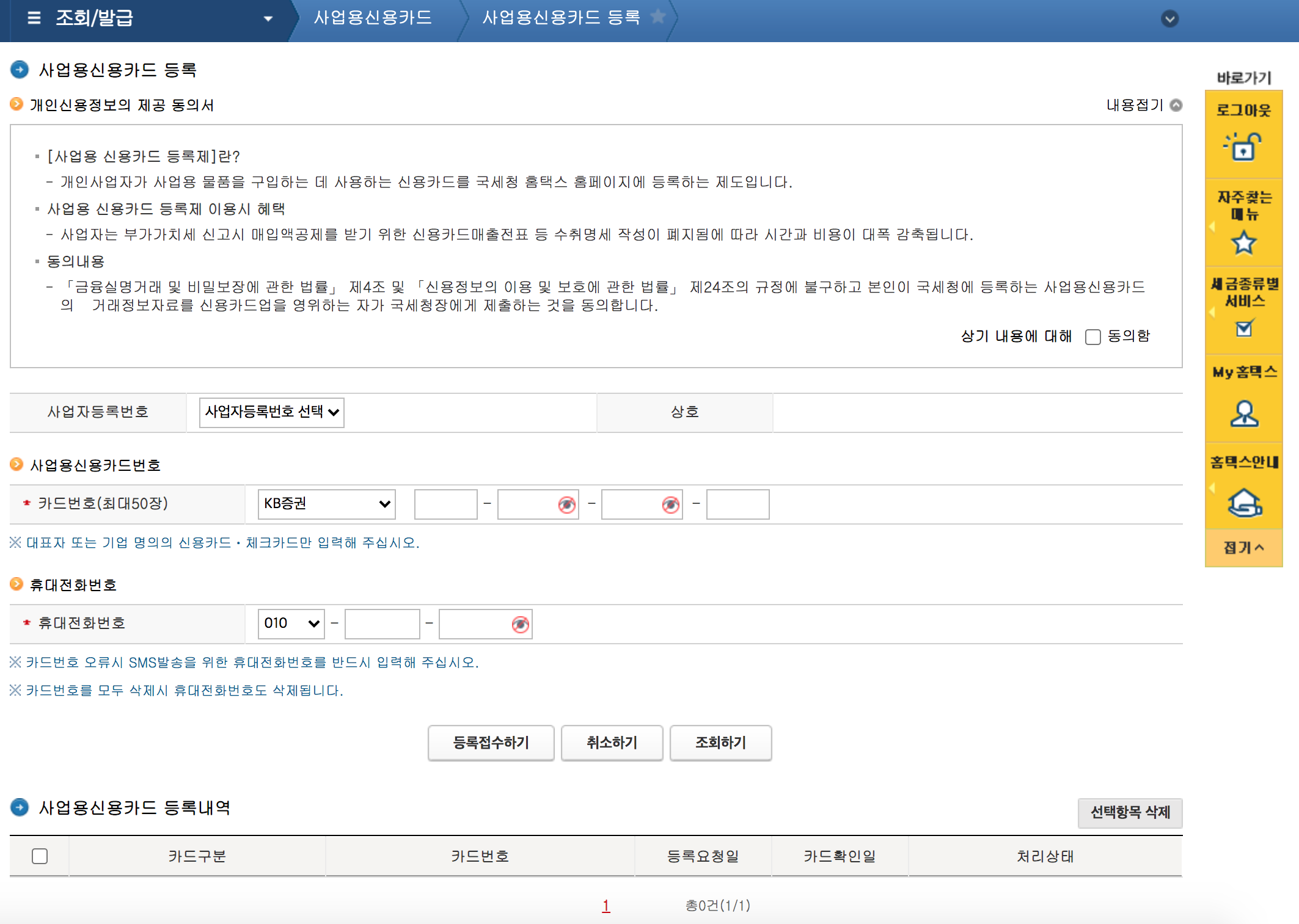 이 카드를 사업용 카드로 홈텍스에서 등록하면 국세청과 이 카드가 다 연결된다.